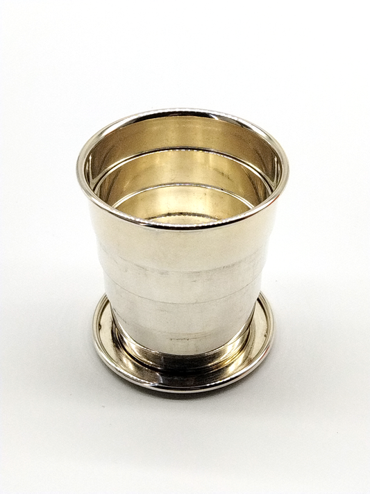 HERMÈS, RARE SILVER PLATED COLLAPSIBLE CUP & LEATHER CASE WITH BOX.