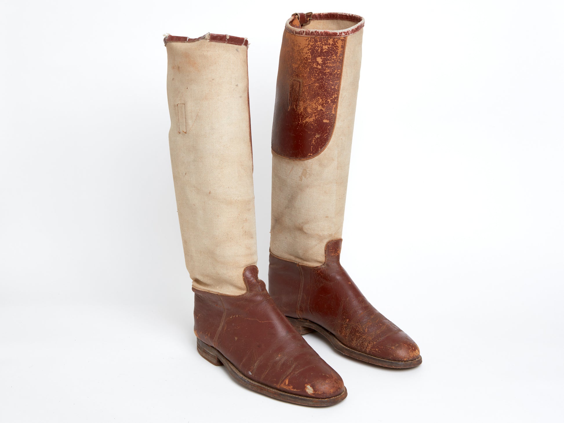 The canvas and leather boots with boot inserts. Beautiful patina. Dimensions: 52 x 30cm.