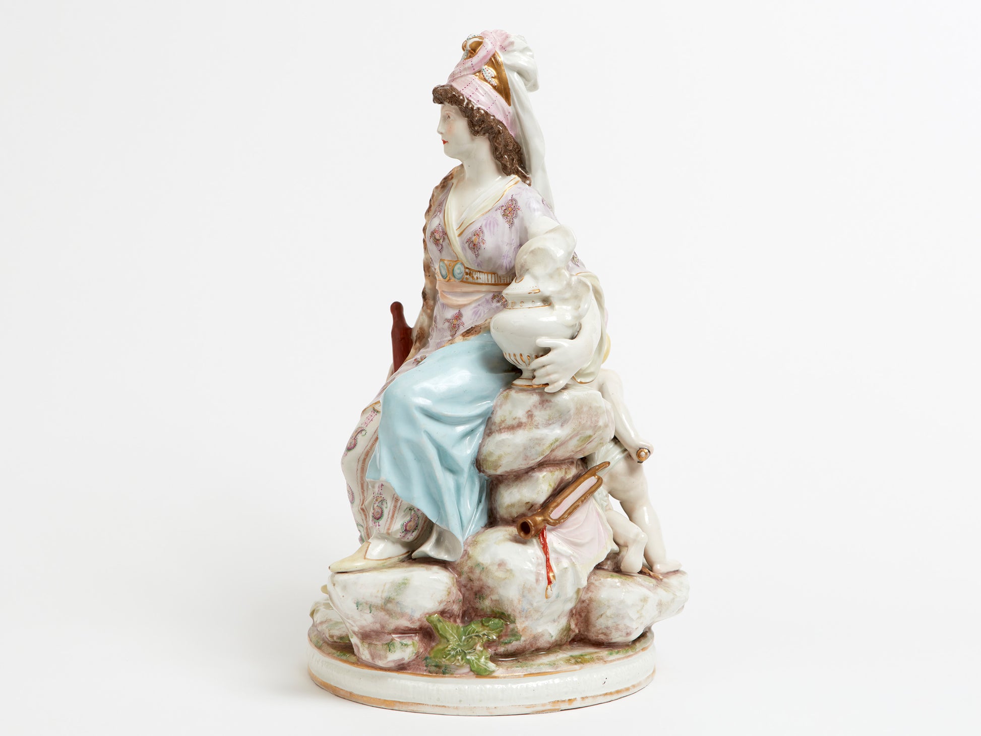 The polychrome decorated figure group personifying 'The Levant'. Base diameter 21cm & height 40cm.  Mid 19th Century.