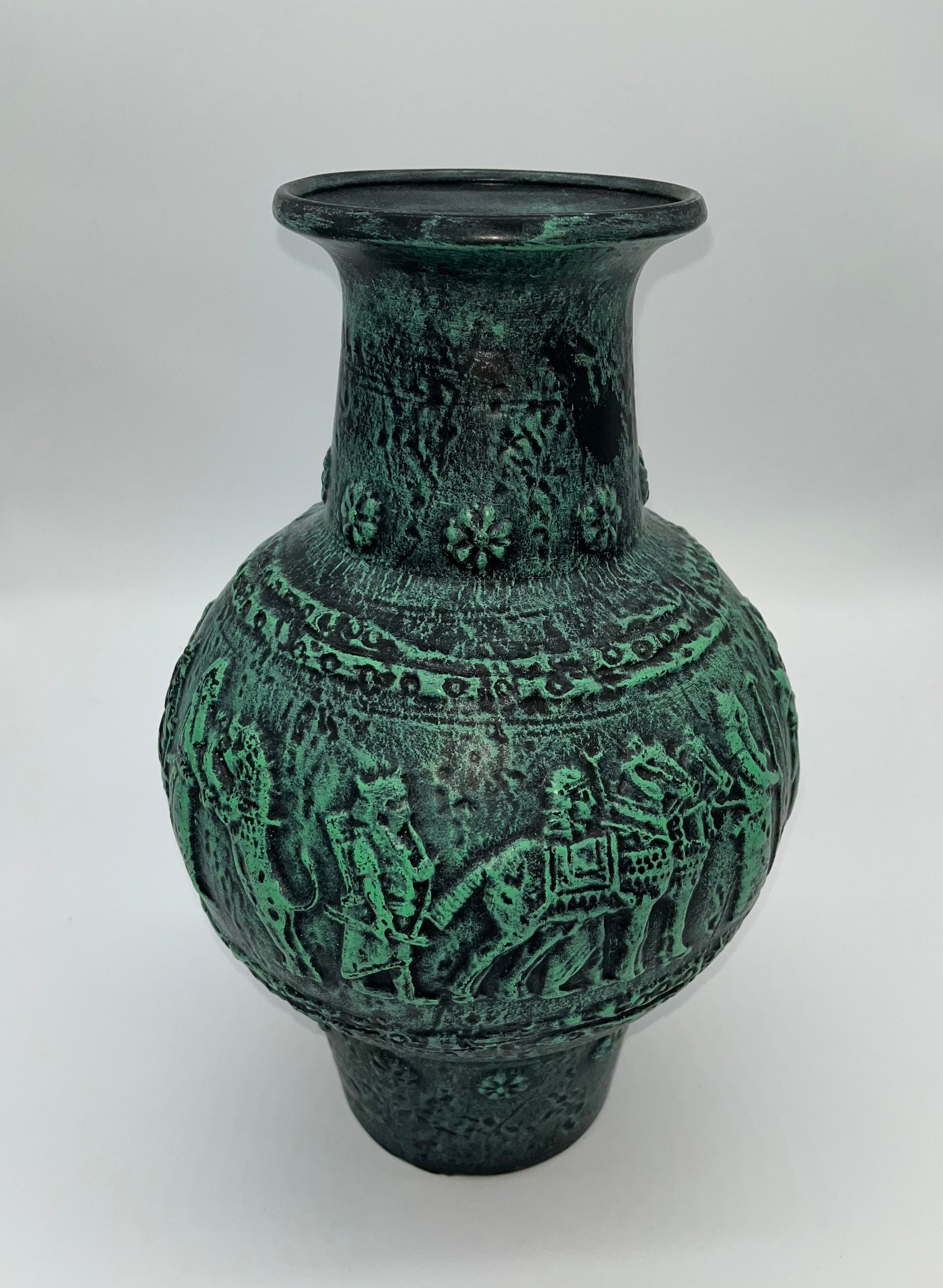 OTTOMAANSE RIJK WEST GERMAN POTTERY VASE WITH ASSYRIAN RELEIF DESIGN, CIRCA 1970, HEIGHT 38cm.