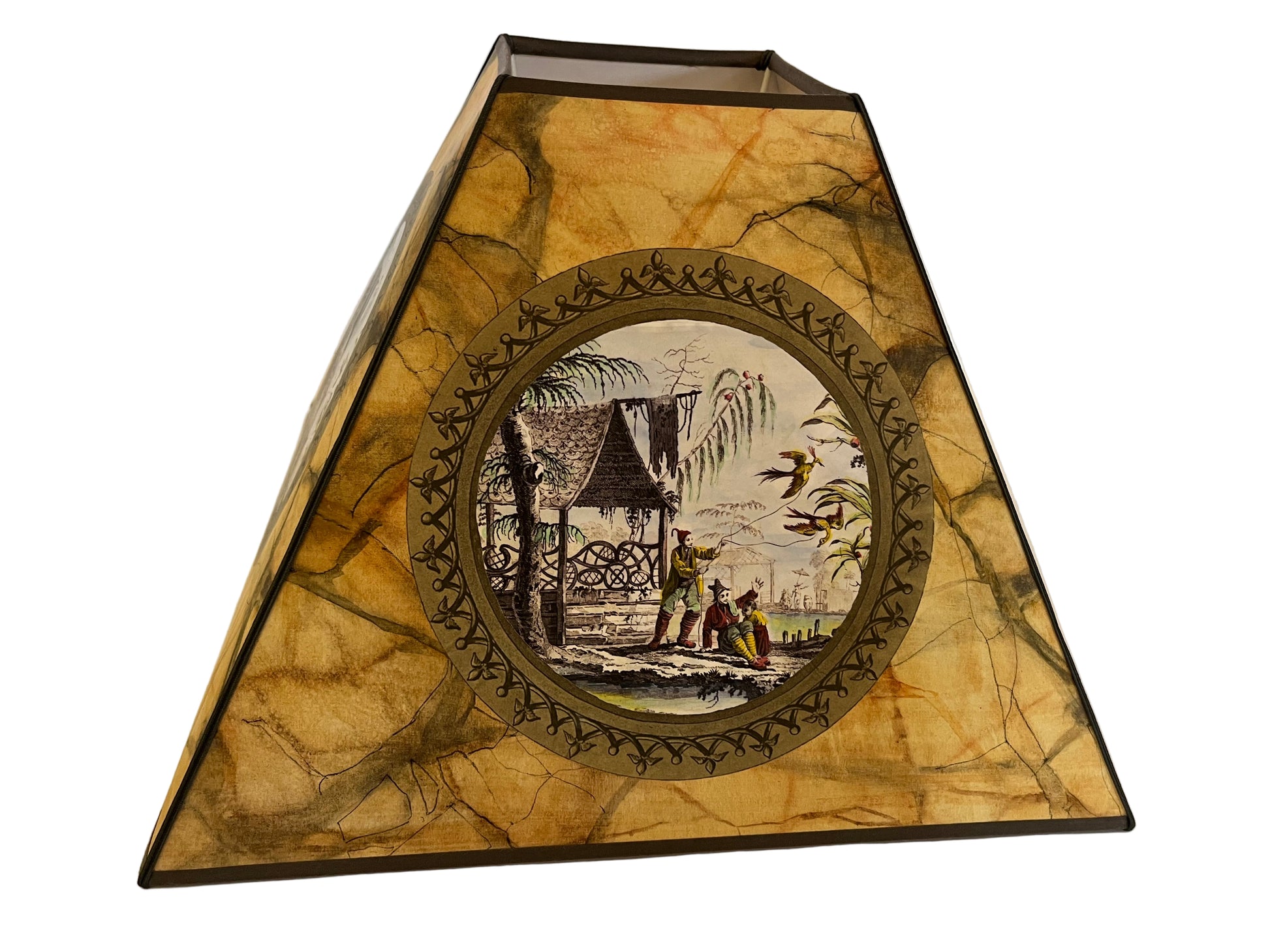 CHINOISERIE, FRENCH SQUARE LAMPSHADE, WIDTH 35cm, HEIGHT 24cm.
